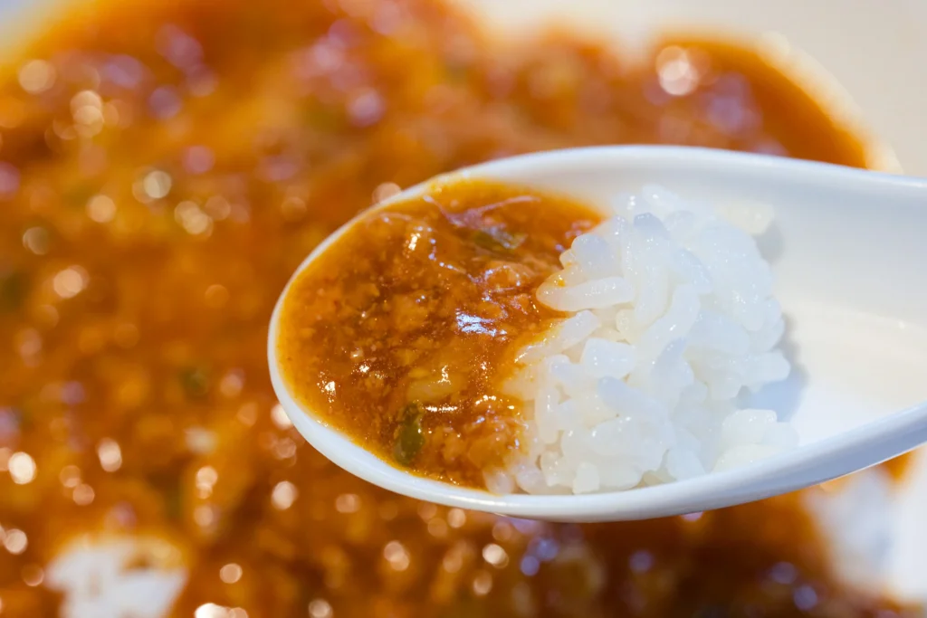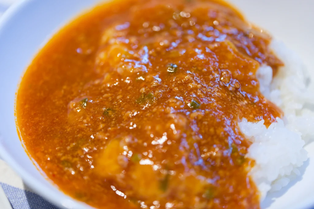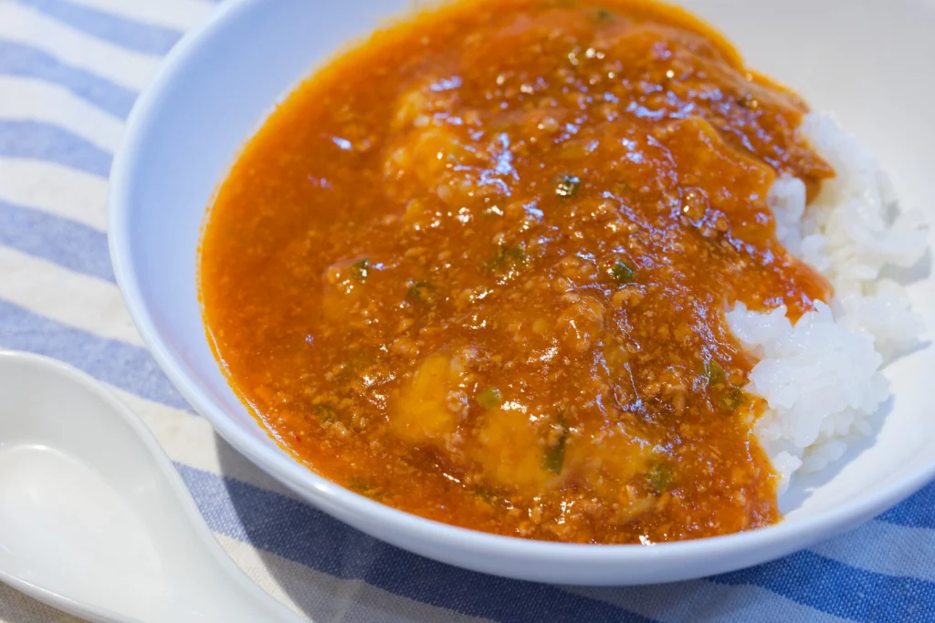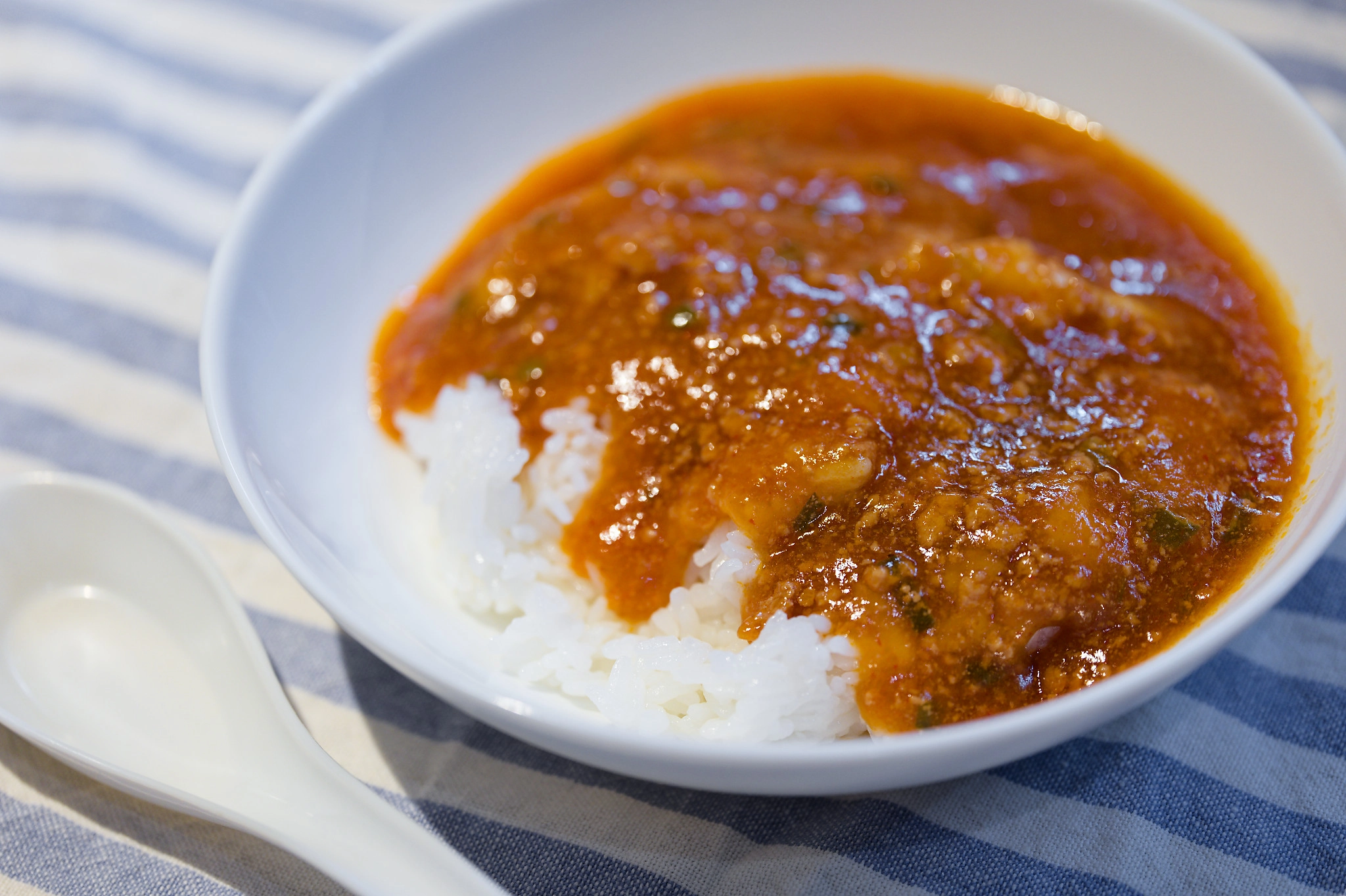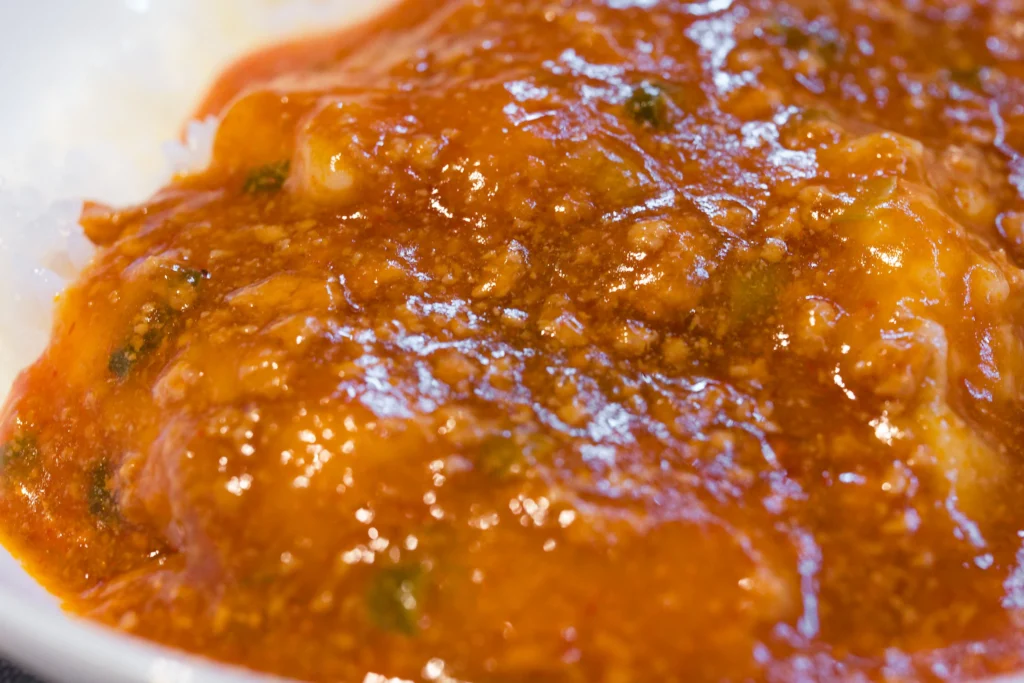 見た目や香りは,中華餡に挽き肉とニラが入っていて,お豆腐の入っていない麻婆豆腐みたいな感じ。