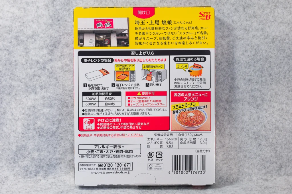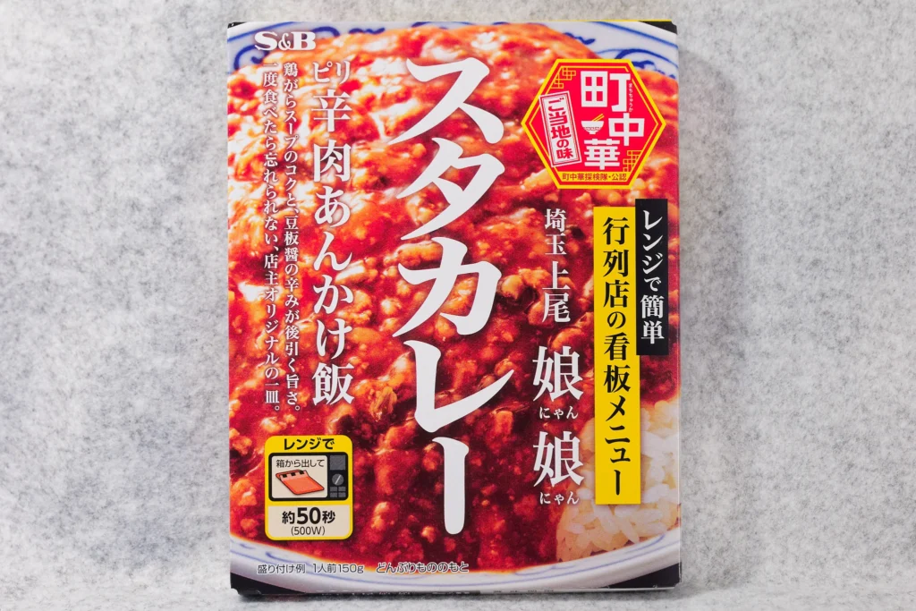 今回いただくのは,エスビー食品さんから発売されている「町中華」シリーズのスタカレー。埼玉のソウルフードとも呼ばれ,県内に複数店舗を構える中華料理店「娘娘」で生まれたオリジナルメニュー。レトルトでお手軽に食べられる知り購入してみました。